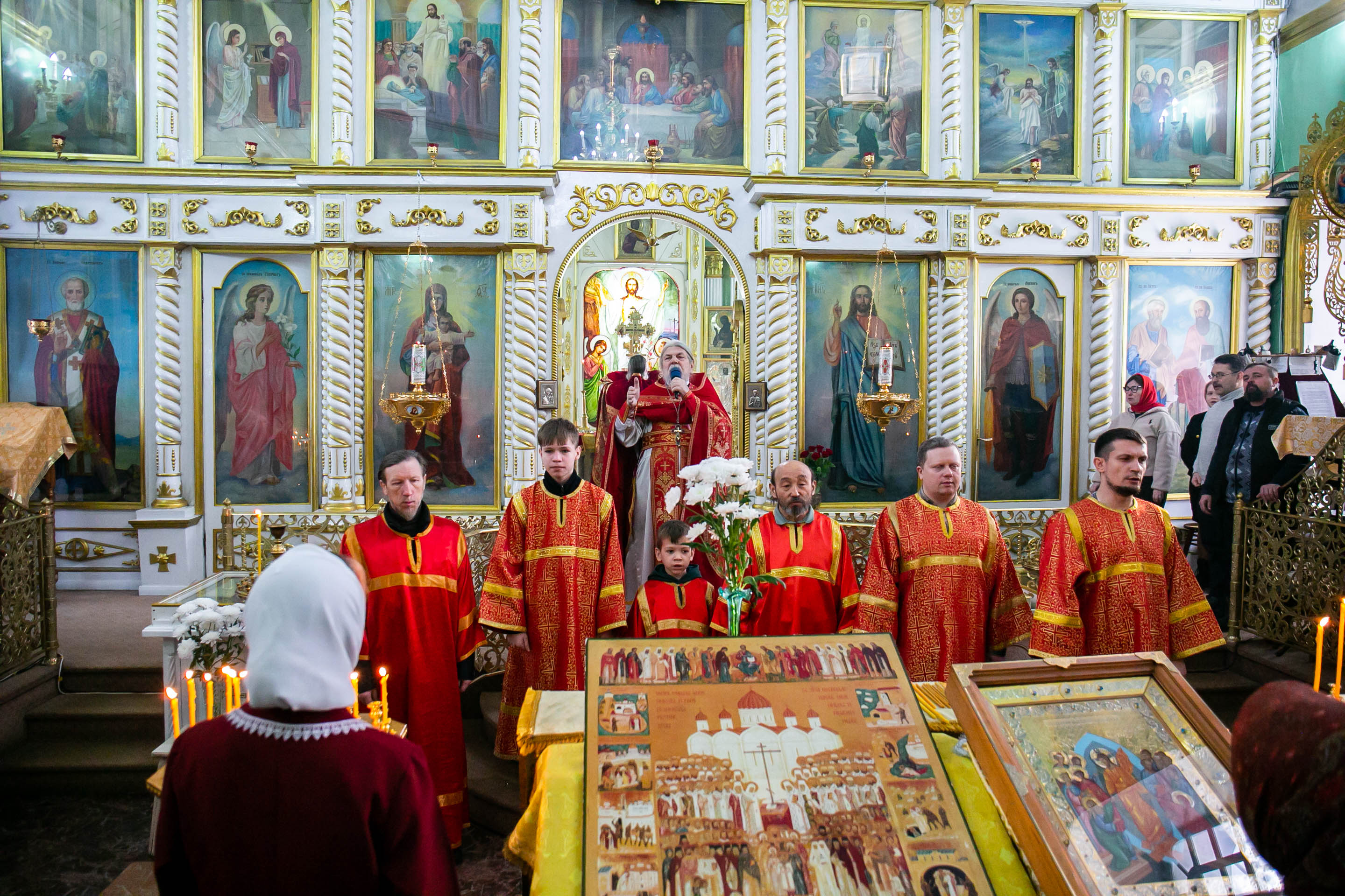 По прочтении Евангельского зачала, на сугубой ектении были вознесены молитвословия о даровании Единства Церкви Христовой и об умирении церковных раздоров. По сугубой ектении были прочитаны молитвы об исцелении страждущих от пагубных зависимостей: алкоголизма, наркомании и лудомании. По окончании Литургии настоятель Собора митрофорный протоиерей Сергий Снопков отслужил панихиду по всем усопшим, в годину гонений за веру Христову пострадавшим. Было пропето Величание новомученикам и испраедникам Церкви Русской и Воскресшему Христу.