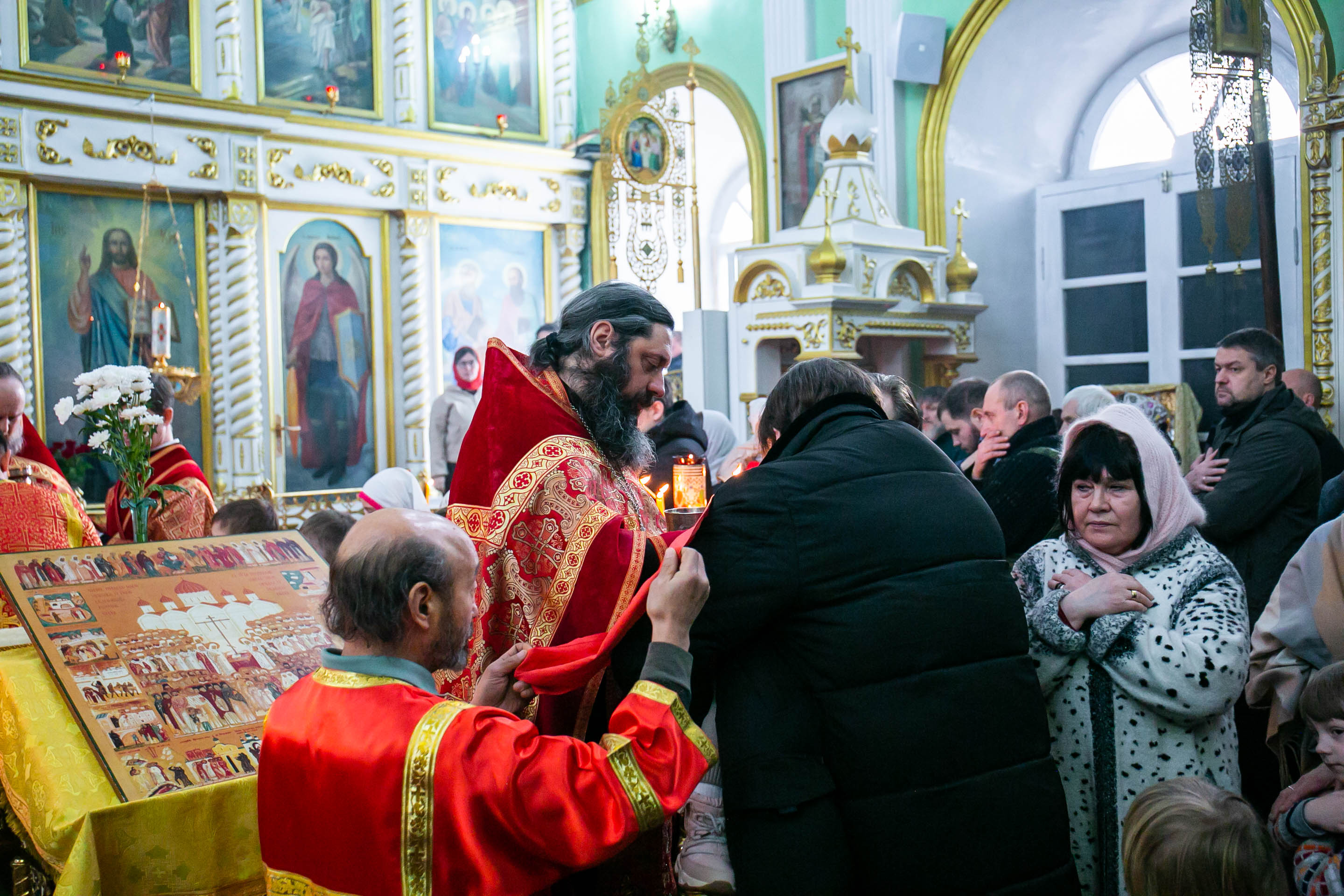 Божественную Литургию в соборе святых апостолов Петра и Павла возглавил настоятель собора протоиерей Сергий Снопков, ему сослужили иерей Павел Орлов и иерей Сергий Сафонеев. Песнопения Литургии исполнили большой и малый хоры собора под управлением регентов Прохоровой О.Н. и Богдановой М.В.