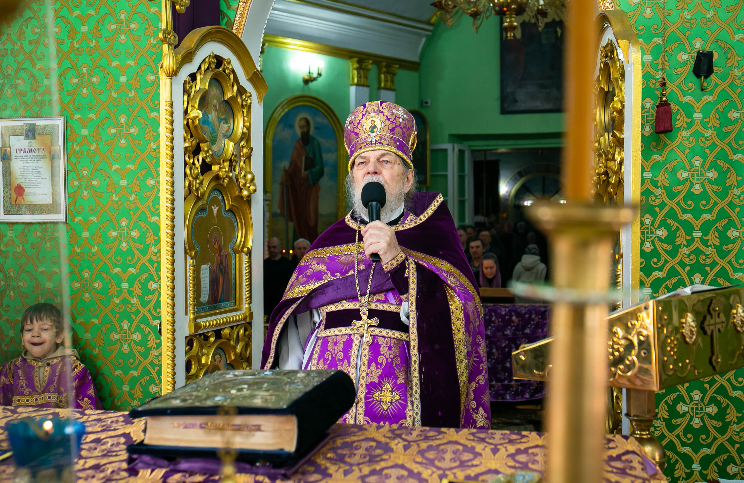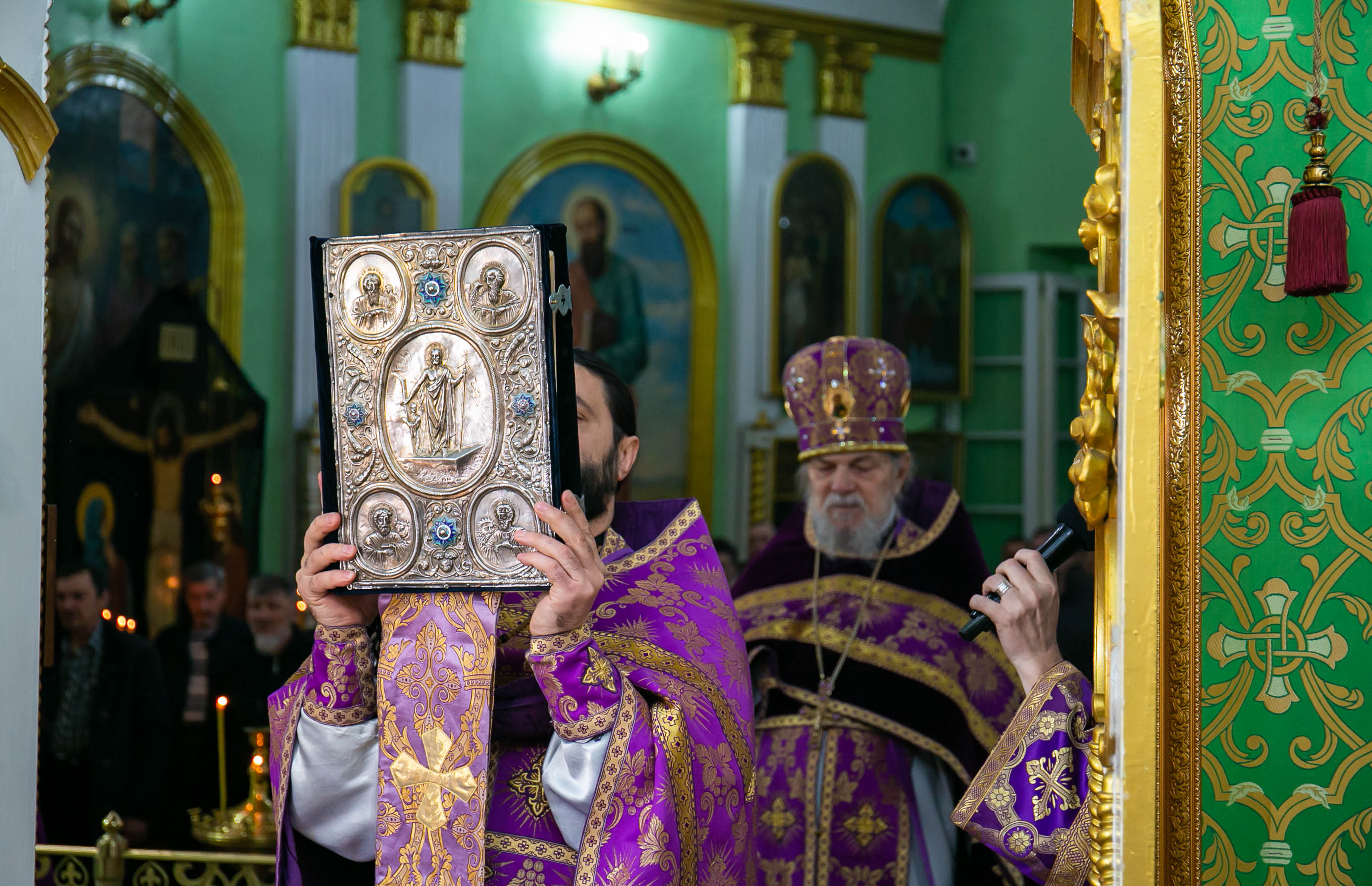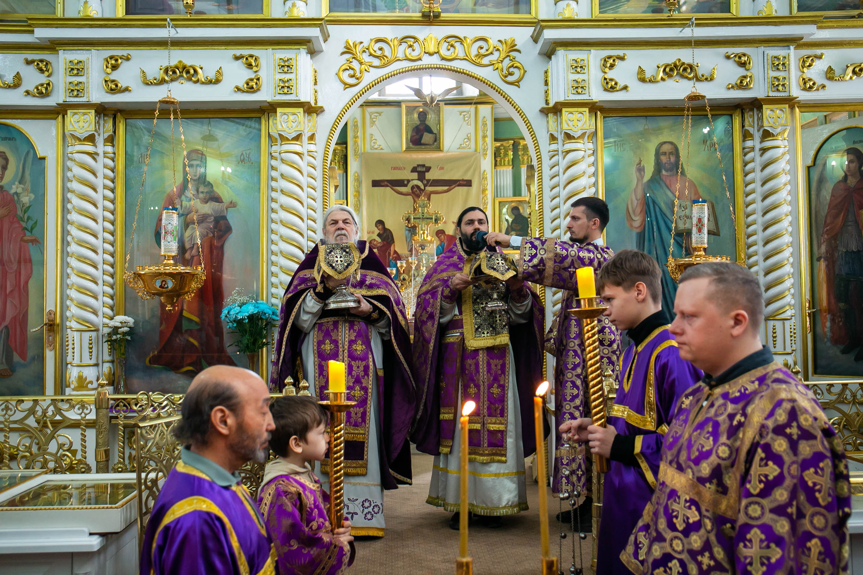 Божественную Литургию в соборе святых апостолов Петра и Павла возглавил настоятель собора протоиерей Сергий Снопков, ему сослужили иерей Сергий Осинцев, иерей Сергий Сафонеев и иерей Павел Орлов. Песнопения Литургии исполнили большой и малый хоры собора под управлением регентов Прохоровой О.Н. и Богдановой М.В.