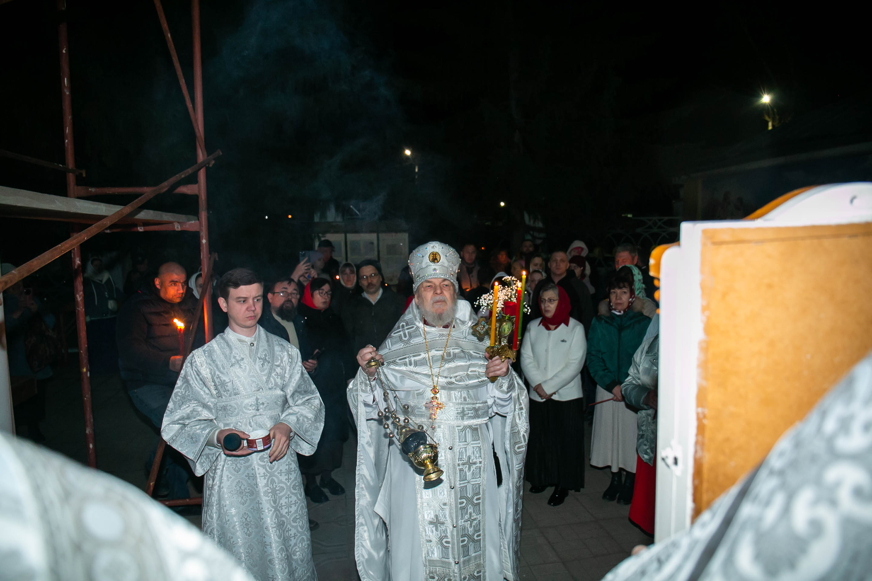 12 апреля 2026 года прихожане Собора святых апостолов Петра и Павла торжественно встретили Праздник праздников и Торжество из торжеств – Светлое Христово Воскресение, Пасху Божию спасительную. Пасхальное богослужение возглавил протоиерей Сергий Снопков. Ему сослужили иерей Сергий Сафонеев, иерей Павел Орлов. Песнопения Богослужения исполнили большой, малый и детский хор Собора под управлением регентов Прохоровой О.Н., Богдановой М.В и Витрук Е.С.