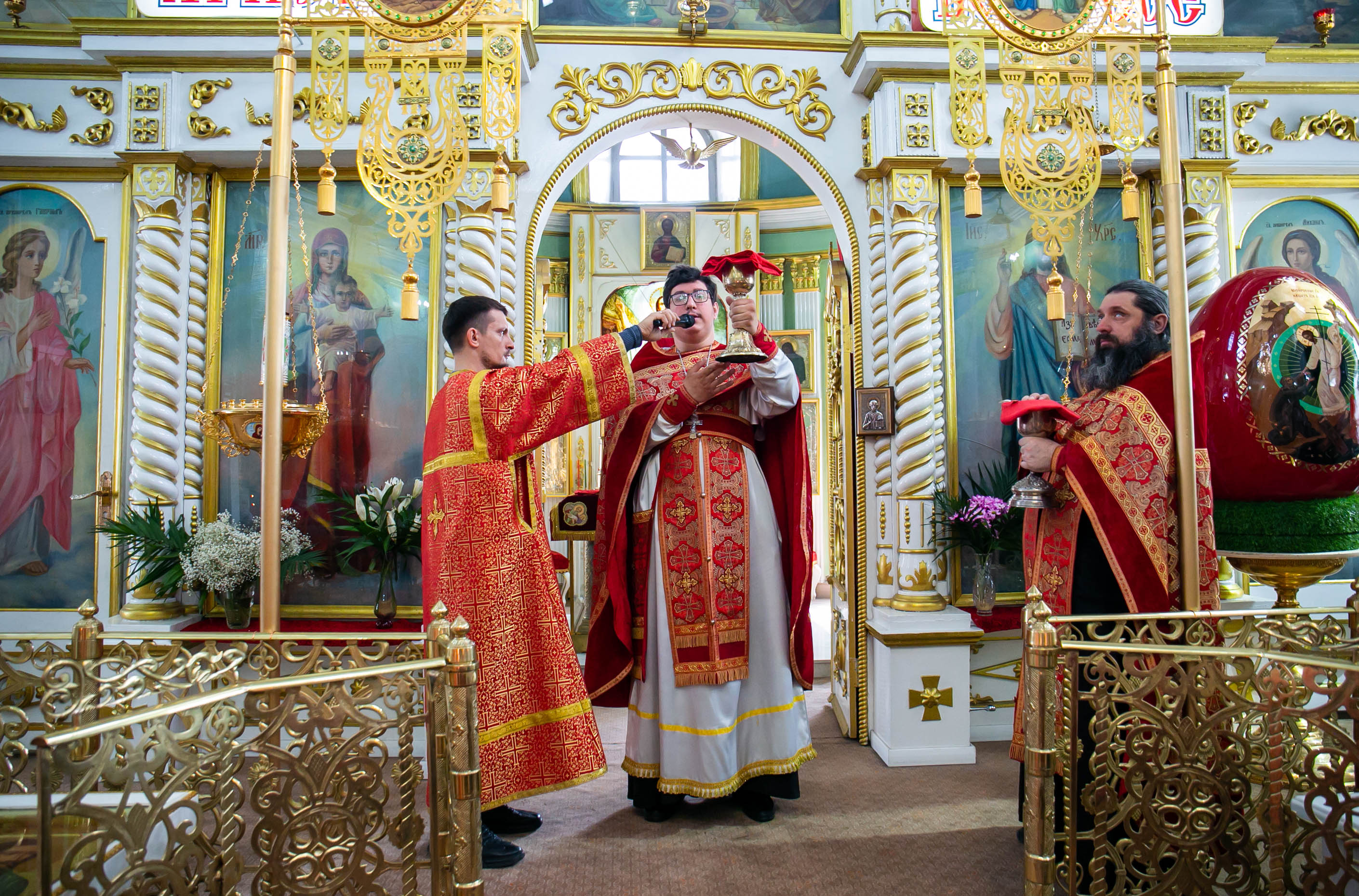 Литургия совершилась по уставу первого дня Пасхи. Были пропеты антифоны праздника Пасхи.
