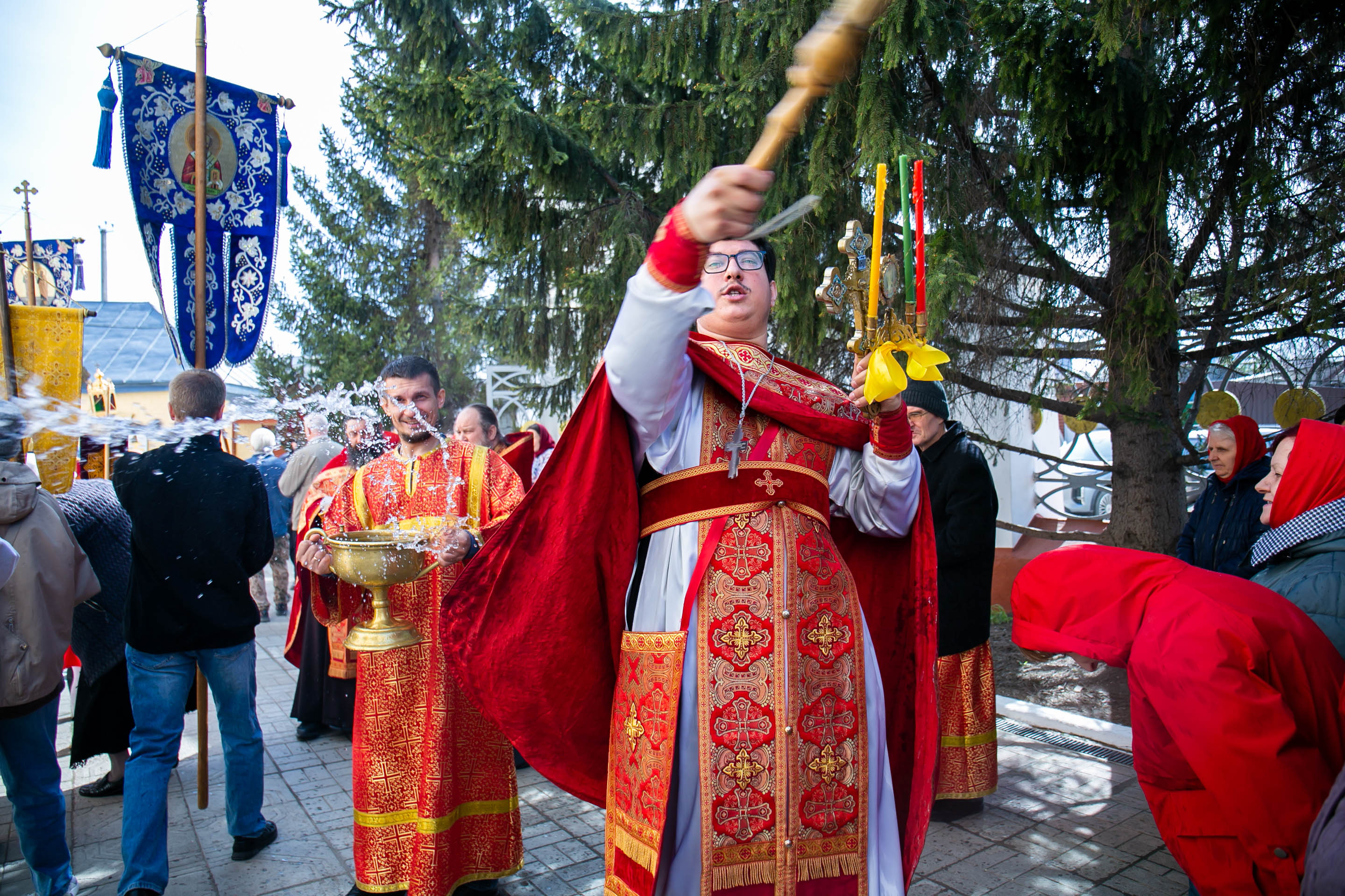 По окончании Литургии состоялся Пасхальный Крестный ход вокруг Собора.