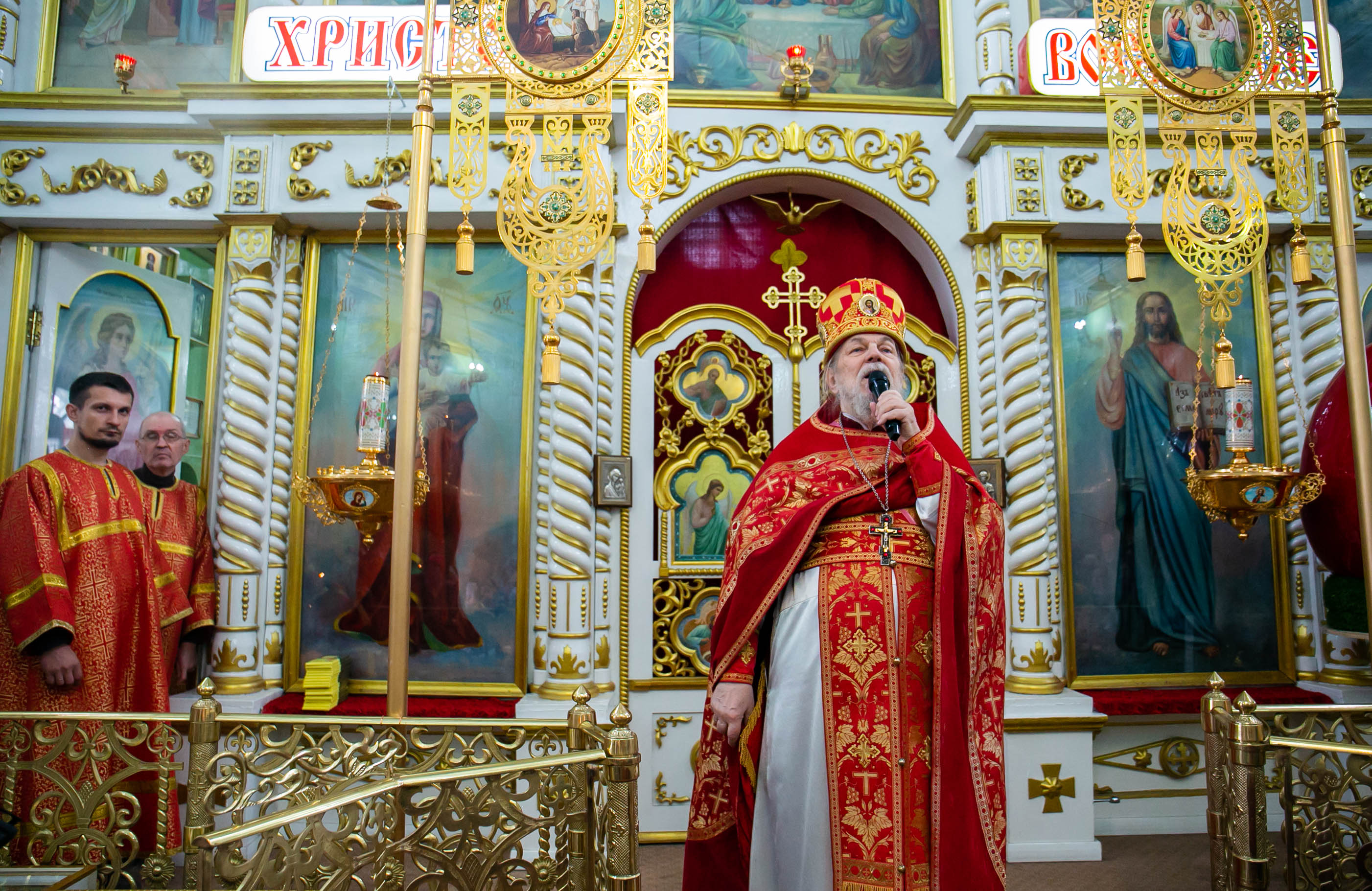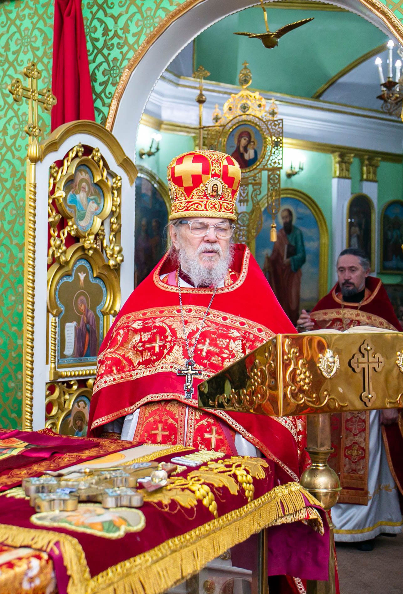 По прочтении Евангельского зачала, на сугубой ектеньи были вознесены молитвословия о даровании Единства Церкви Христовой и об умирении церковных раздоров. По сугубой ектенье были прочитаны молитвы об исцелении страждущих от пагубных зависимостей: алкоголизма,наркомании и лудомании. В завершении богослужения протоиерей Сергий Снопков обратился к молящимся со словом проповеди.