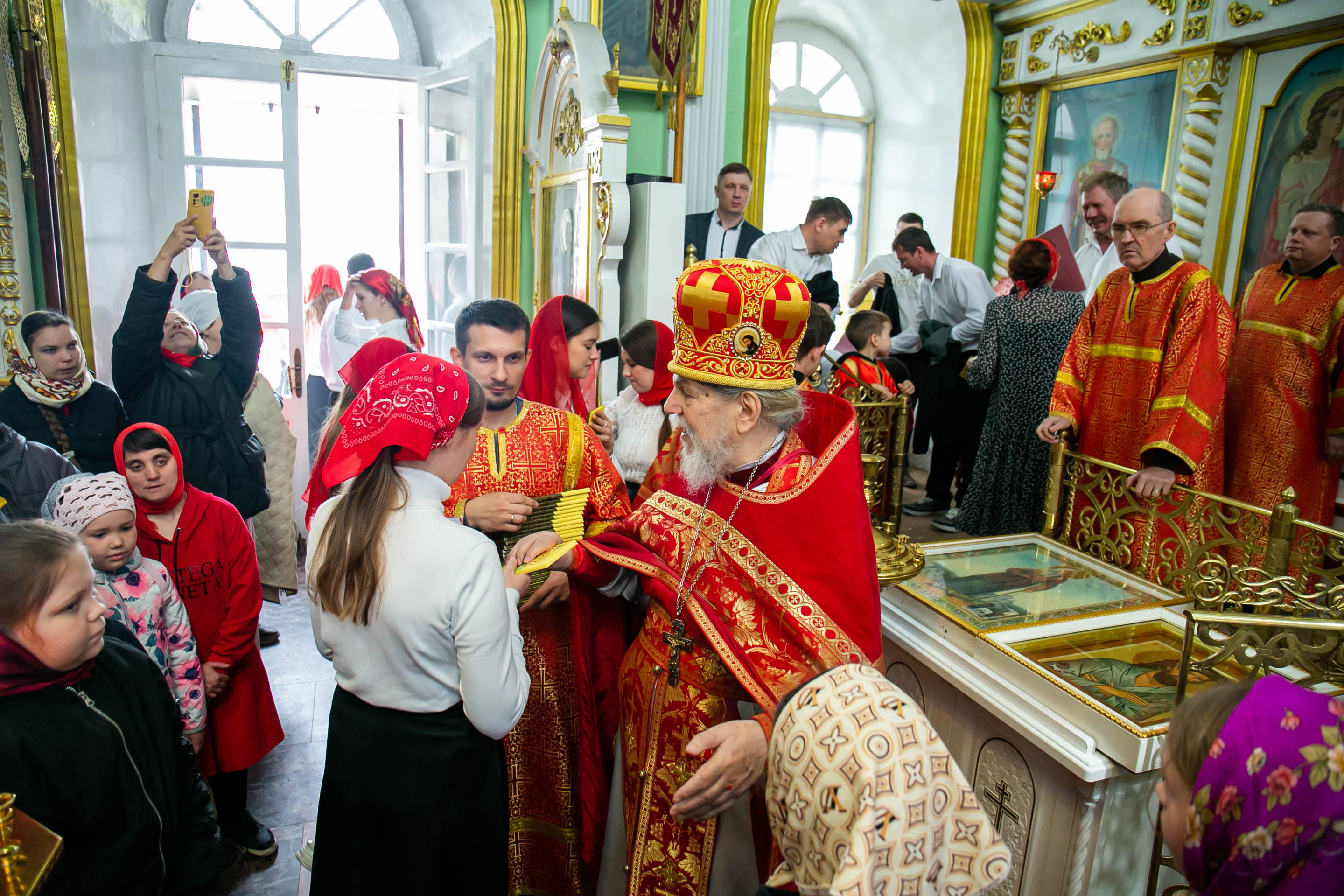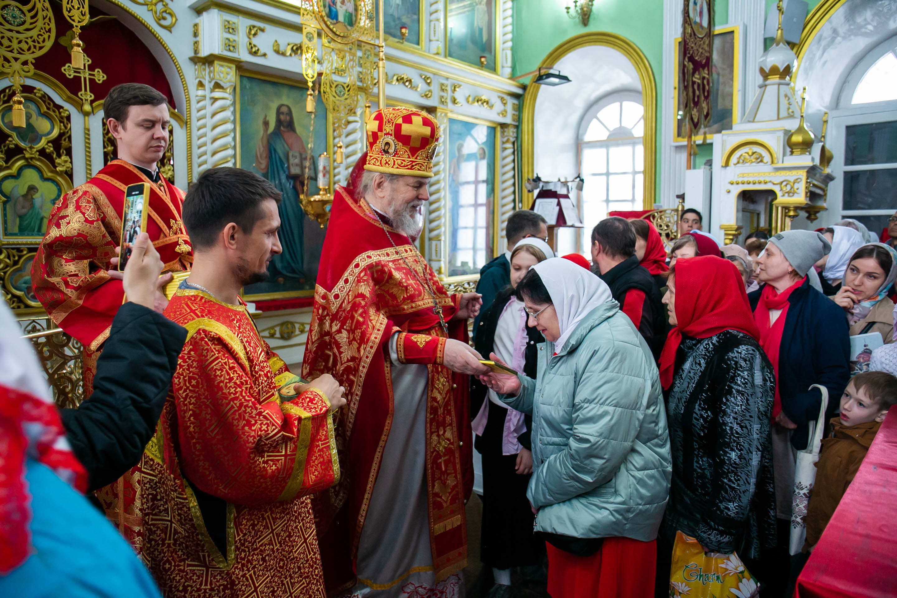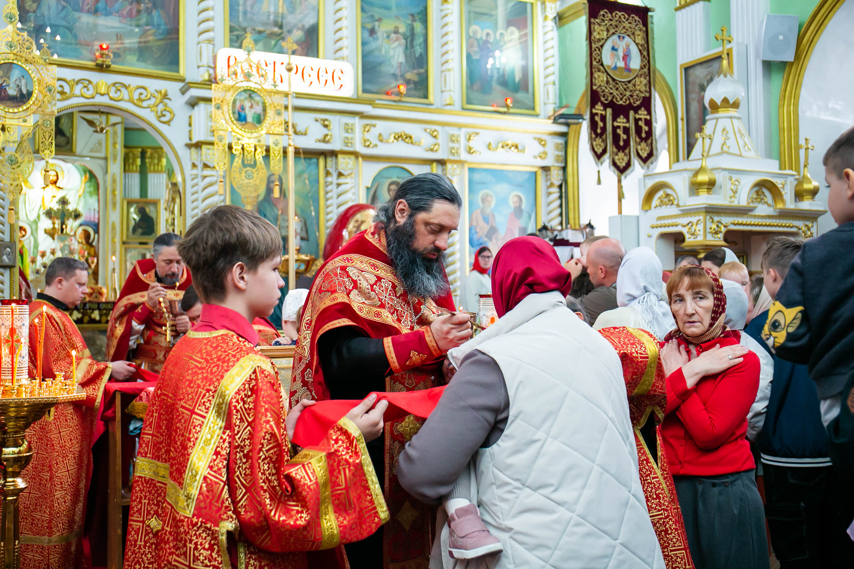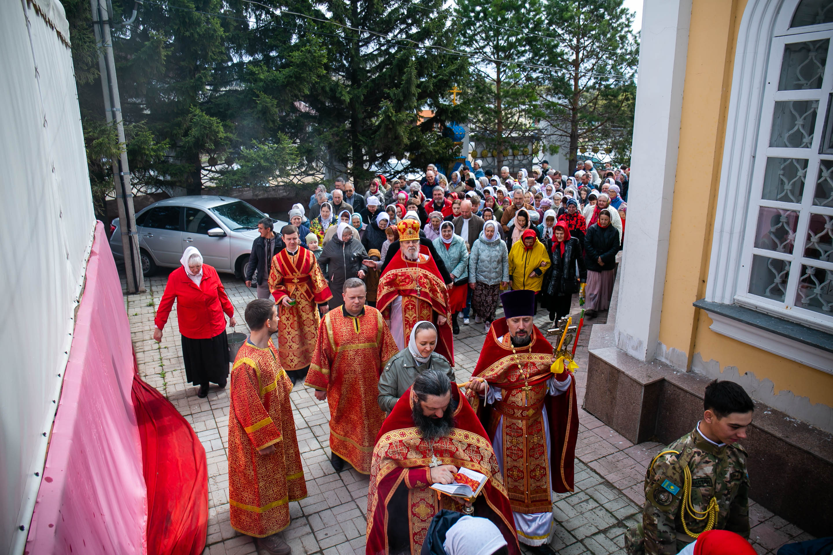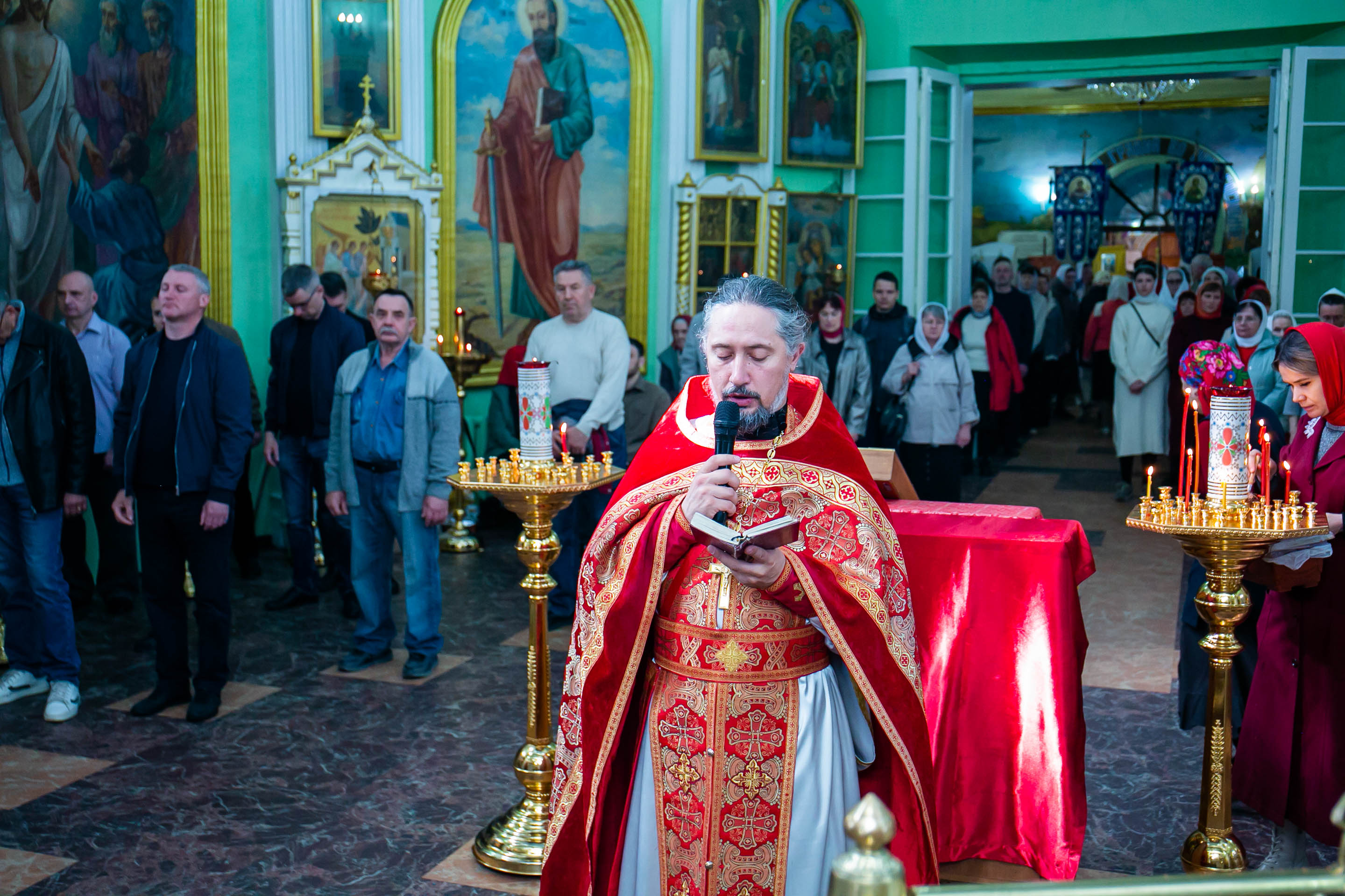 Настоятель Собора святых апостолов Петра и Павла протоиерей Сергий Снопков возглавил Божественную Литургию пасхальным чином. Ему сослужили иерей Евгений Столяров, иерей Сергий Сафонеев. Песнопения Литургии исполнили большой и малый хоры Собора под управлением регентов Прохоровой О.Н. и Богдановой М.В.