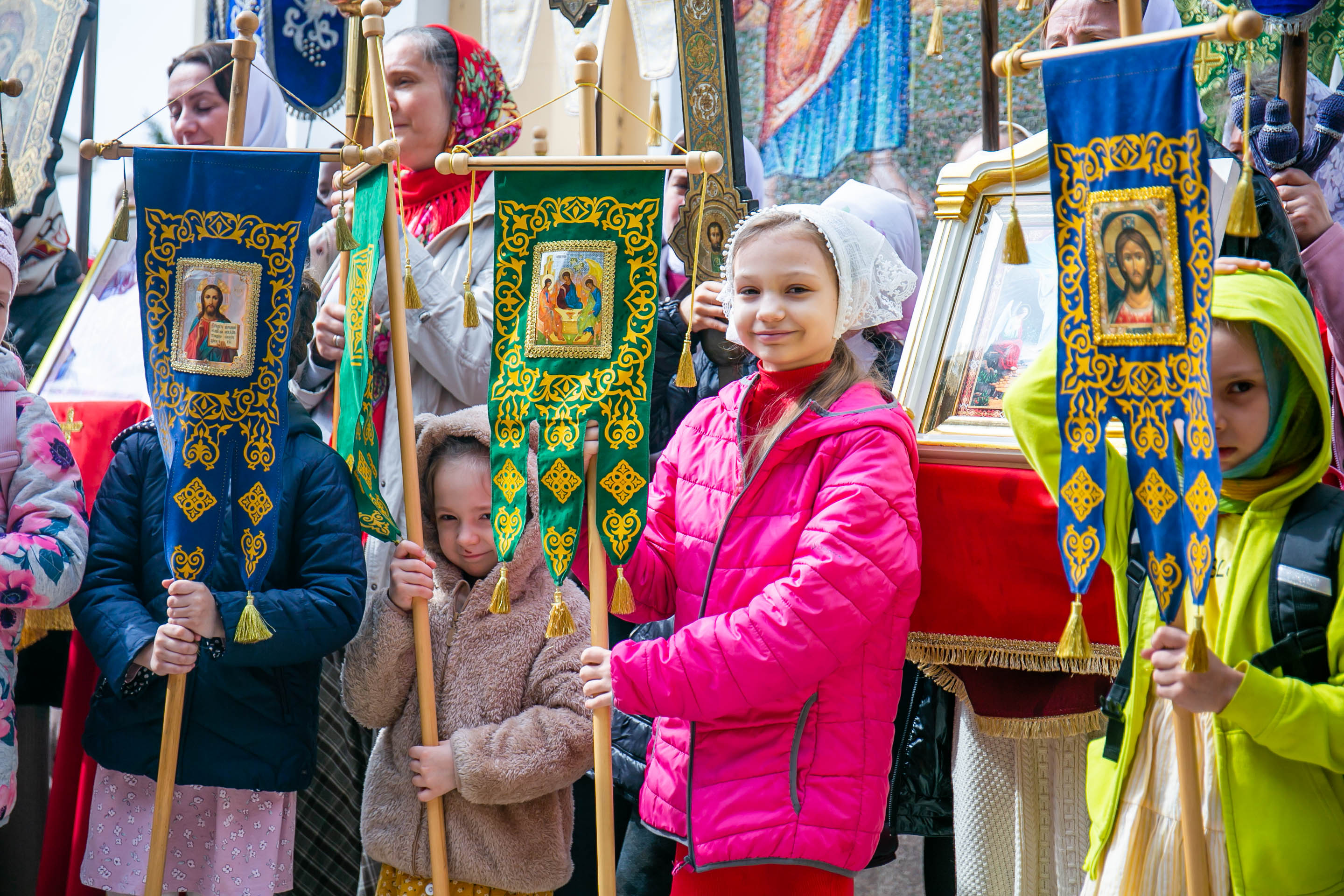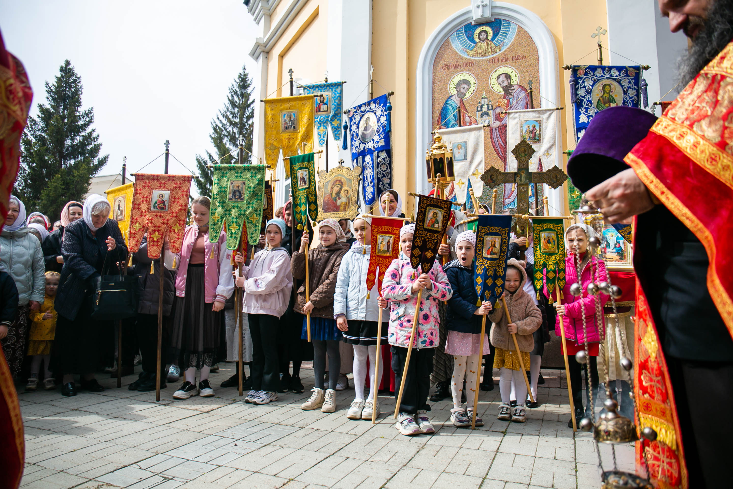 По окончании Литургии состоялся Пасхальный Крестный ход вокруг Собора.